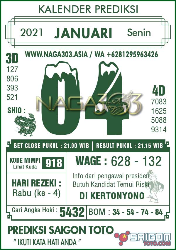 Prediksi Saigon Toto Senin 04 Januari 2021