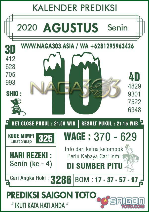 Prediksi Saigon Toto Senin 10 Agustus 2020