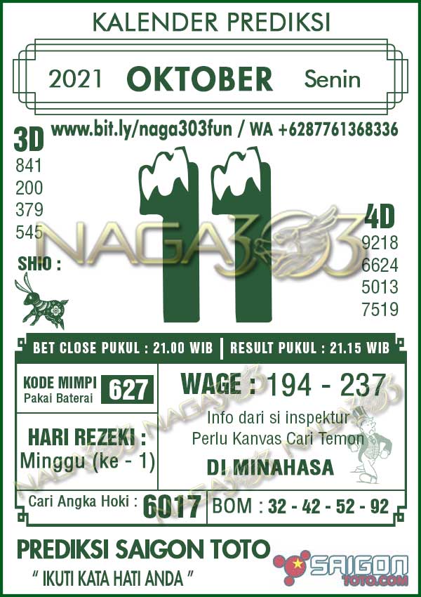 Prediksi Saigon Toto Senin 11 Oktober 2021