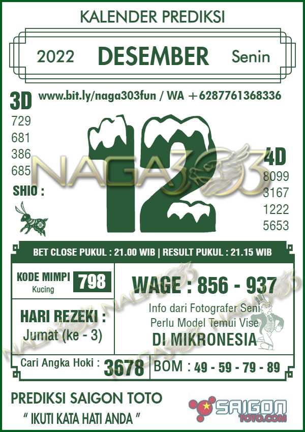 Prediksi Saigon Toto Senin 12 Desember 2022