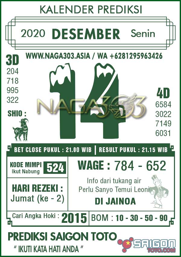 Prediksi Saigon Toto Senin 14 Desember 2020 | Web Toto Naga303