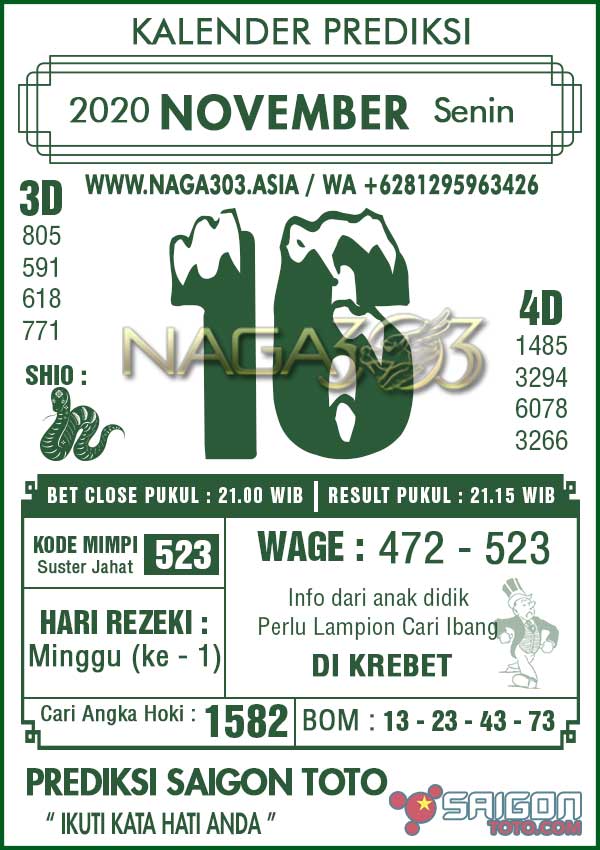 Prediksi Saigon Toto Senin 16 November 2020