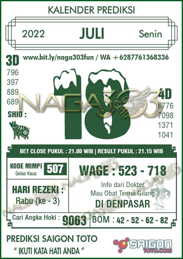 Prediksi Saigon Toto Senin 18 Juli 2022