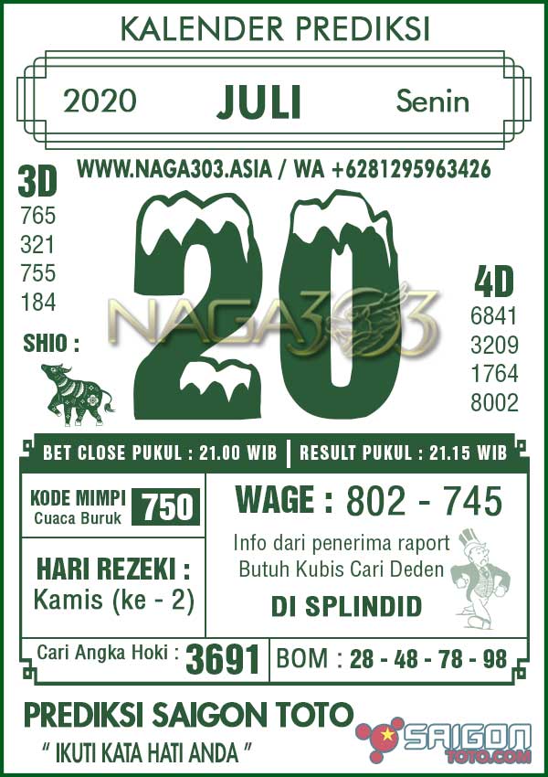 Prediksi Saigon Toto Senin 20 Juli 2020 | Web Toto Naga303