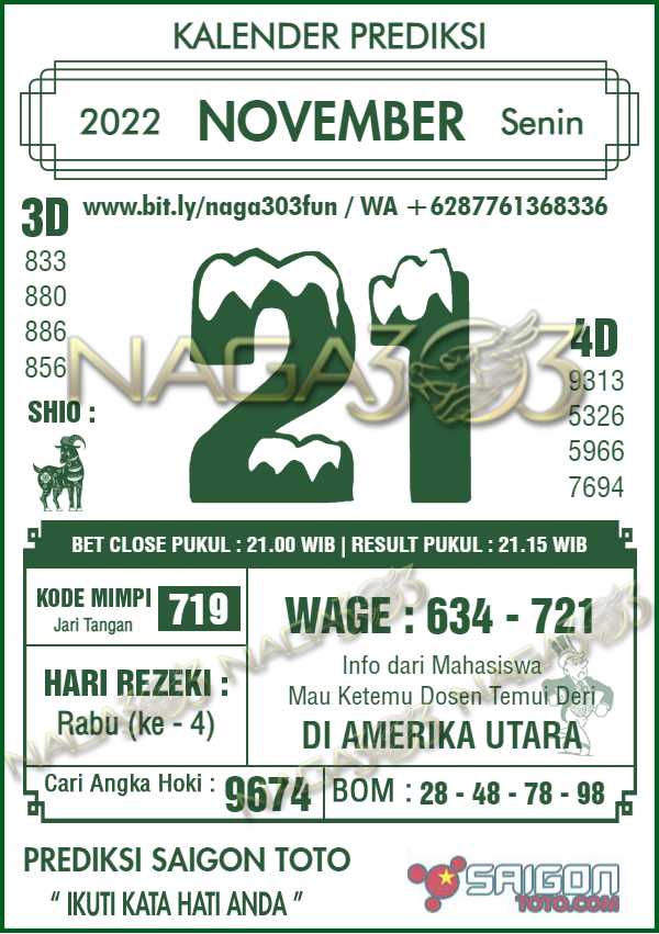 Prediksi Saigon Toto Senin 21 November 2022