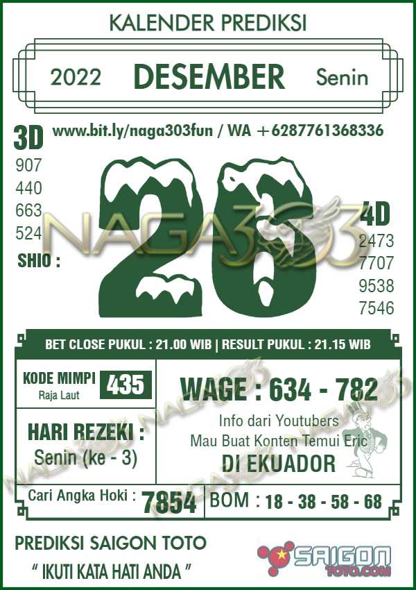 Prediksi Saigon Toto Senin 26 Desember 2022
