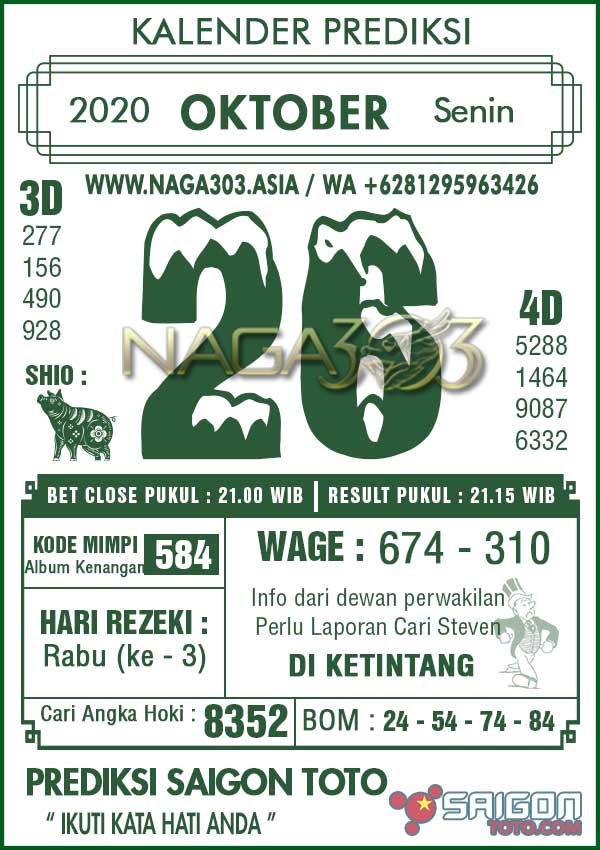 Prediksi Saigon Toto Senin 26 Oktober 2020