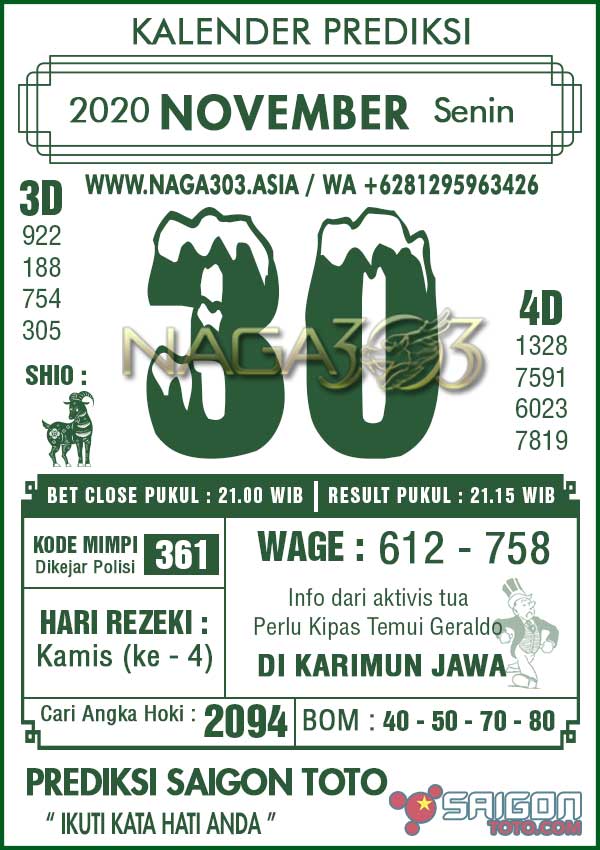 Prediksi Saigon Toto Senin 30 November 2020 | Web Toto Naga303