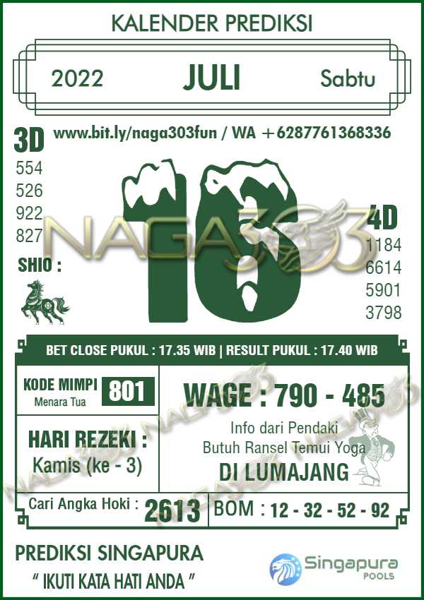 Prediksi Singapore Pools Jumat 15 Juli 2022 | Web Toto Naga303