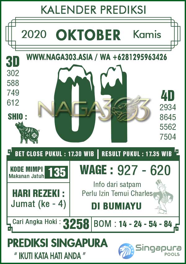 Prediksi Singapore Pools Kamis 01 Oktober 2020