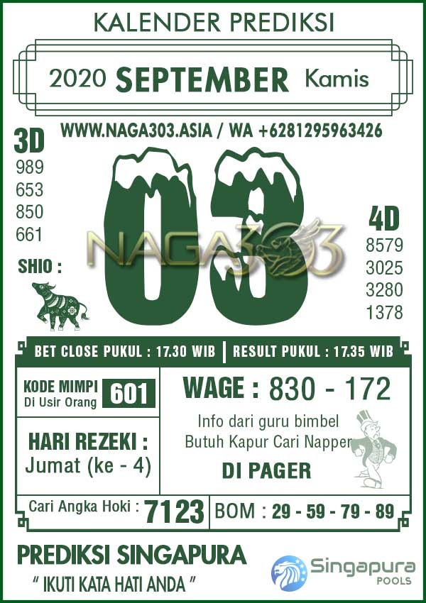 Prediksi Singapore Pools Kamis 03 September 2020