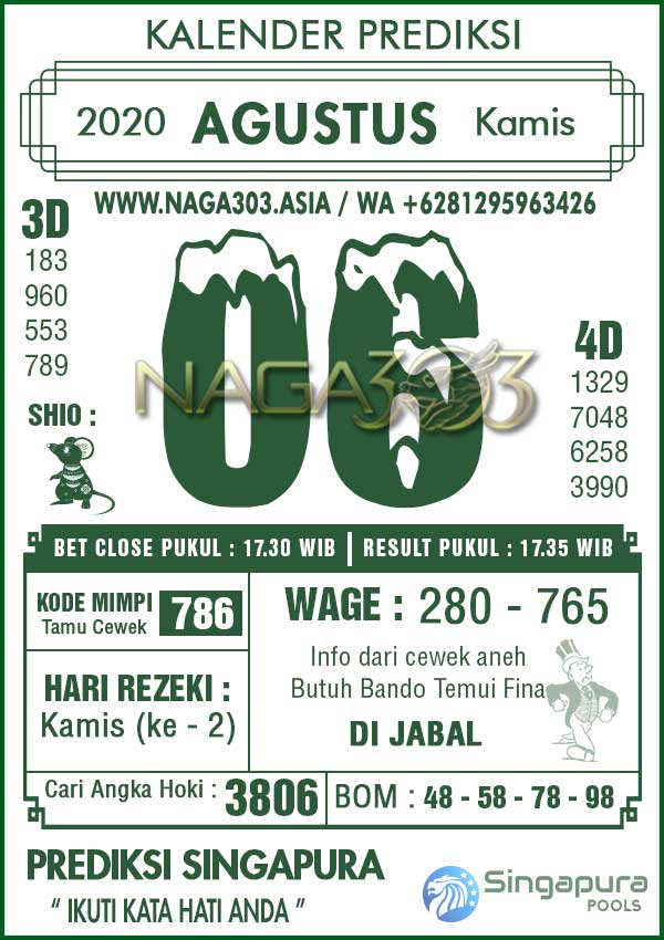 Prediksi Singapore Pools Kamis 06 Agustus 2020 | Web Toto Naga303