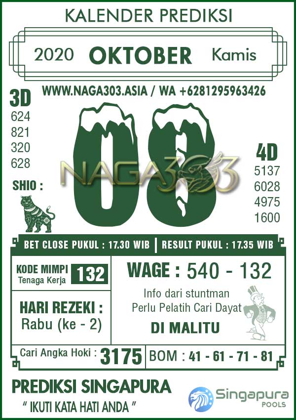 Prediksi Singapore Pools Kamis 08 Oktober 2020