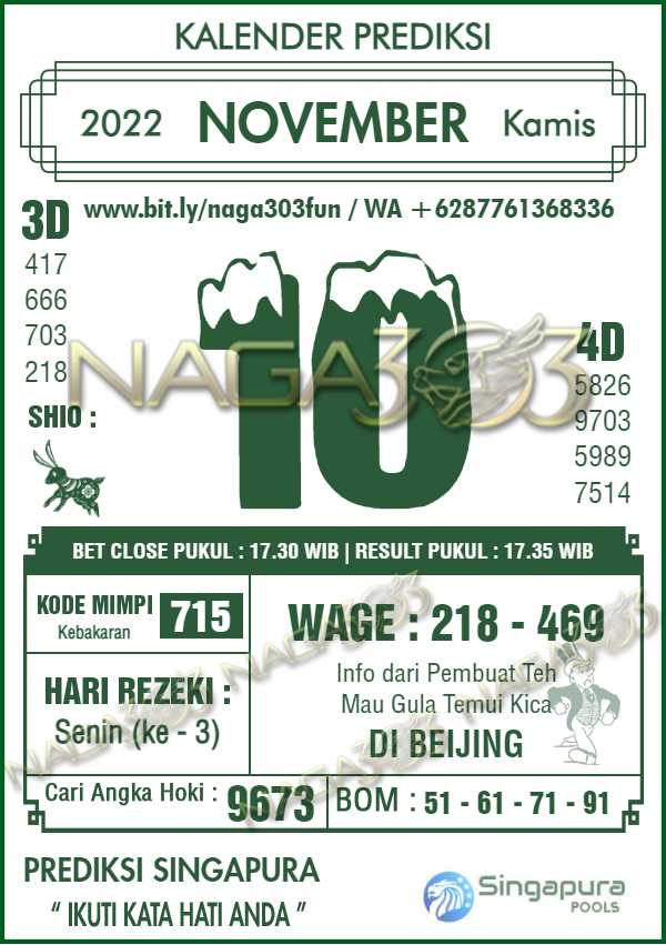 Prediksi Singapore Pools Kamis 10 November 2022