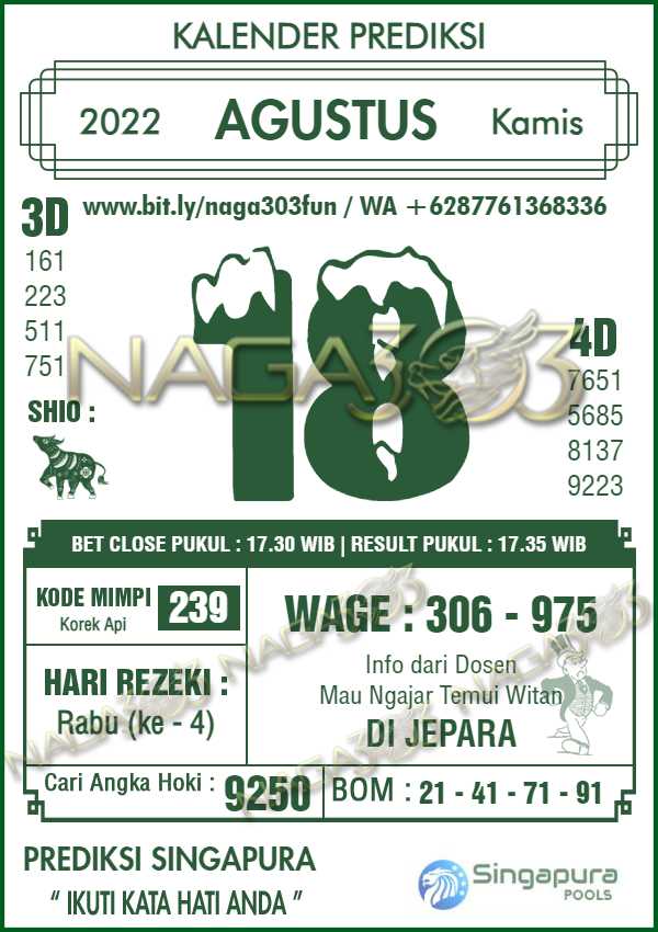 Prediksi Singapore Pools Kamis 18 Agustus 2022 | Web Toto Naga303