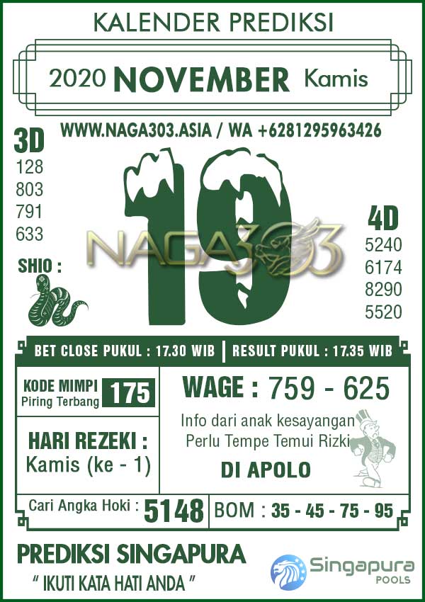 Prediksi Singapore Pools Kamis 19 November 2020 | Web Toto Naga303