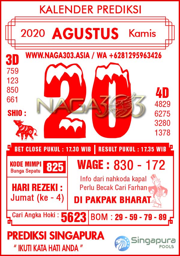 Prediksi Singapore Pools Kamis 20 Agustus 2020