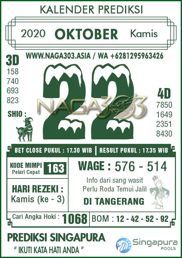 Prediksi Singapore Pools Kamis 22 Oktober 2020