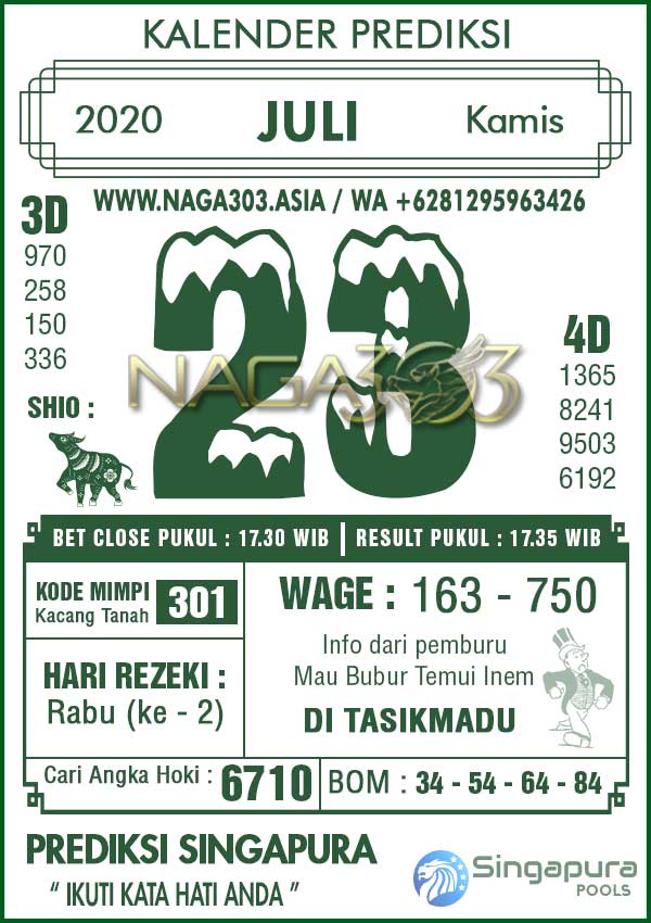 Prediksi Singapore Pools Kamis 23 Juli 2020