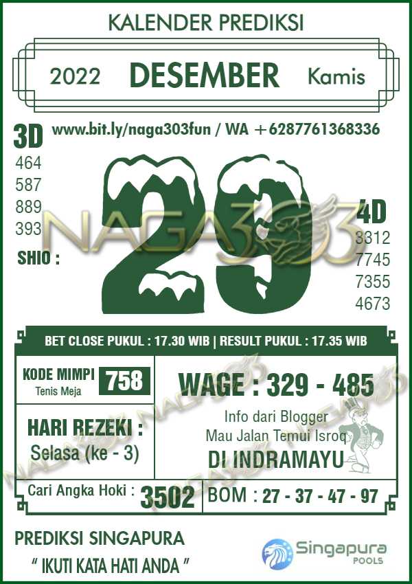 Prediksi Singapore Pools Kamis 29 Desember 2022 | Web Toto Naga303
