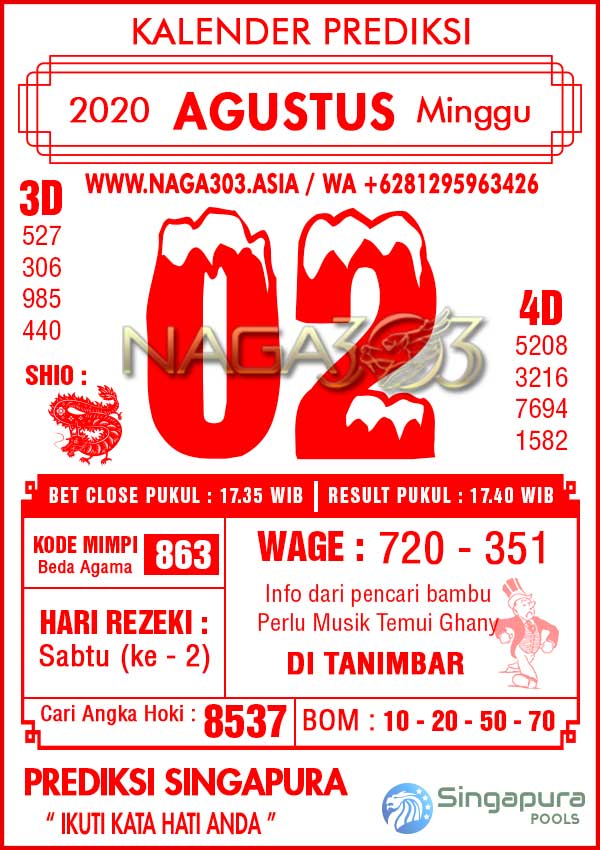 Prediksi Singapore Pools Minggu 02 Agustus 2020 | Web Toto Naga303