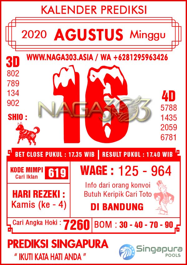 Prediksi Singapore Pools Minggu 16 Agustus 2020