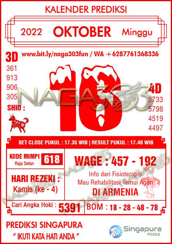 Prediksi Singapore Pools Minggu 16 Oktober 2022
