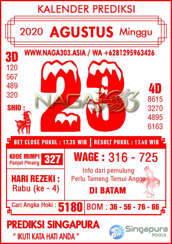 Prediksi Singapore Pools Minggu 23 Agustus 2020