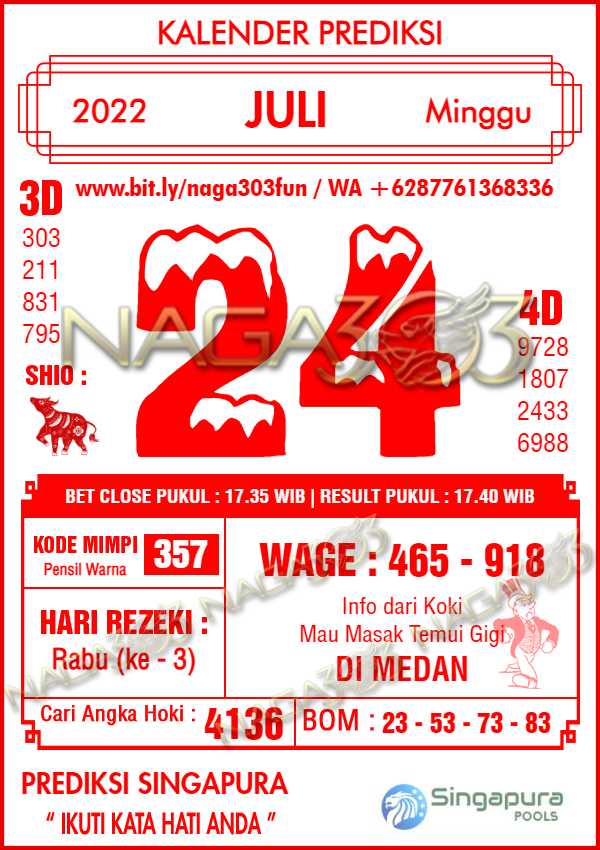 Prediksi Singapore Pools Minggu 24 Juli 2022 | Web Toto Naga303