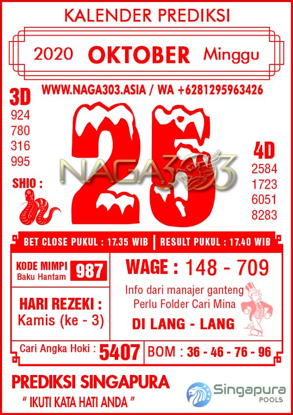 Prediksi Singapore Pools Minggu 25 Oktober 2020 | Web Toto Naga303