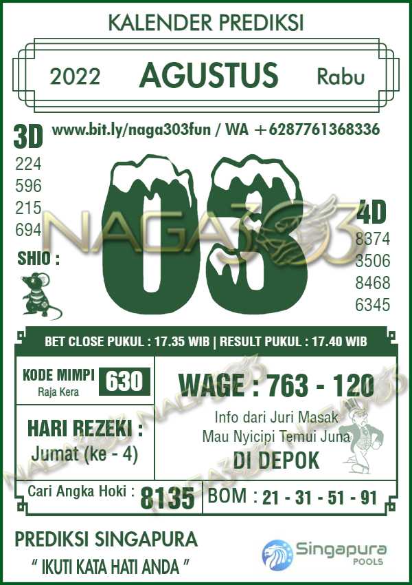 Prediksi Singapore Pools Rabu 03 Agustus 2022