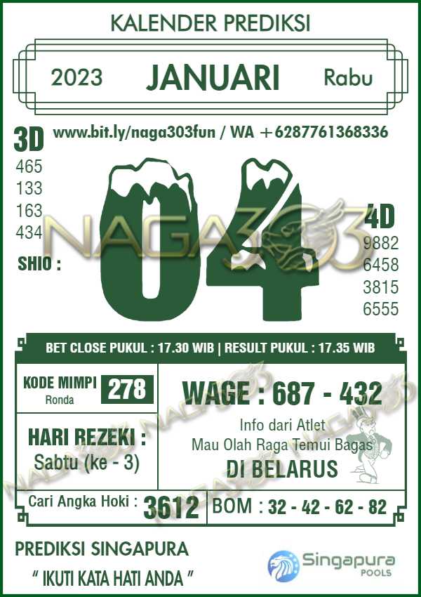 Prediksi Singapore Pools Rabu 04 Januari 2023