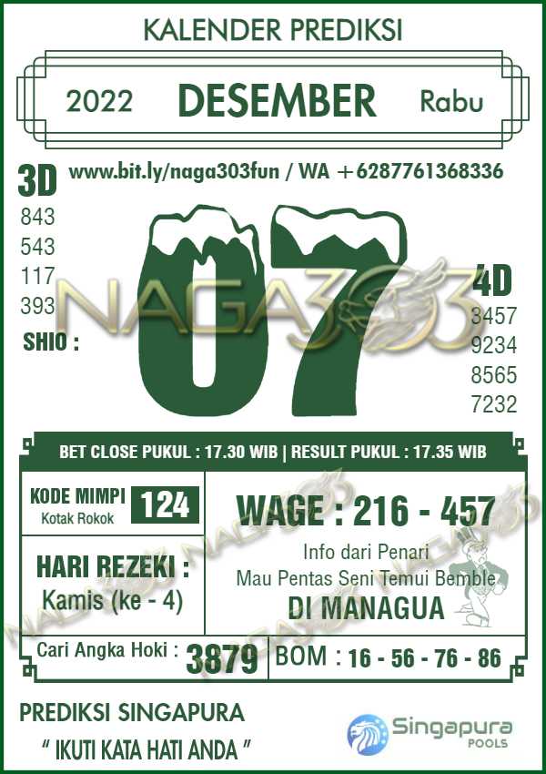 Prediksi Singapore Pools Rabu 07 Desember 2022