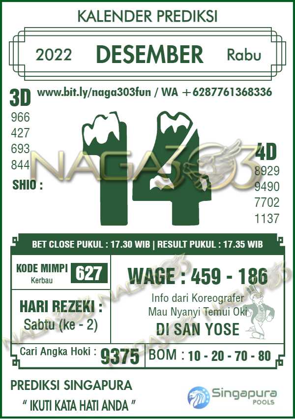 Prediksi Singapore Pools Rabu 14 Desember 2022