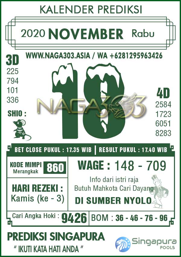 Prediksi Singapore Pools Rabu 18 November 2020