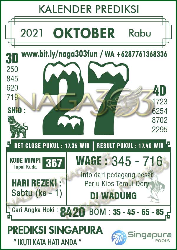 Prediksi Singapore Pools Rabu 27 Oktober 2021