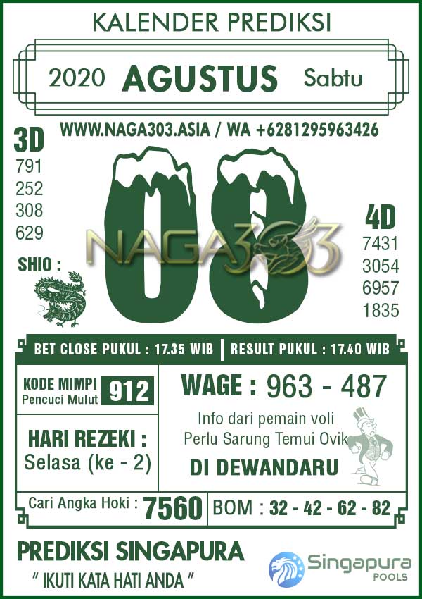 Prediksi Singapore Pools Sabtu 08 Agustus 2020 | Web Toto Naga303