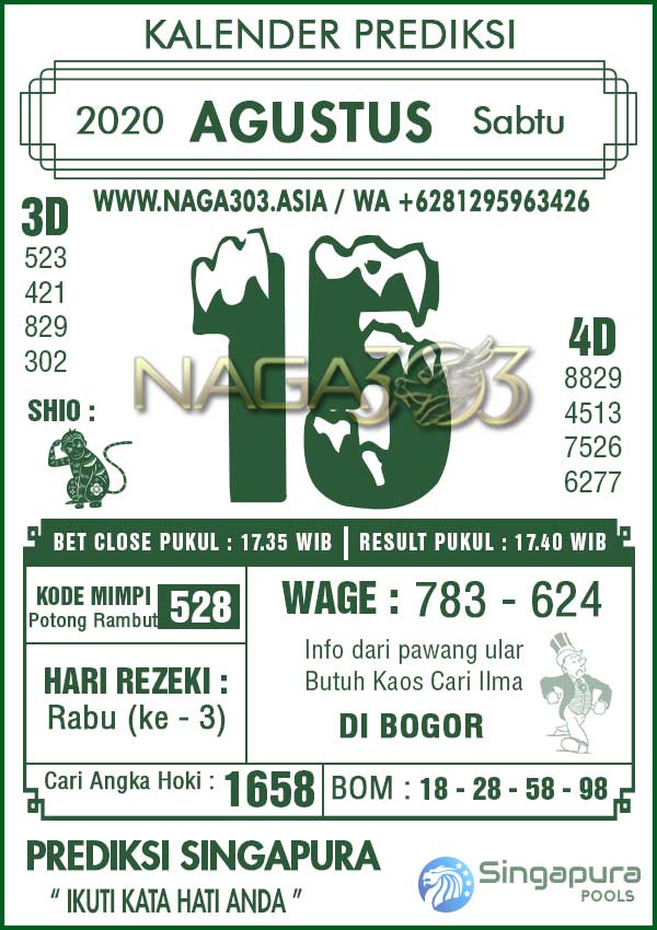 Prediksi Singapore Pools Sabtu 15 Agustus 2020