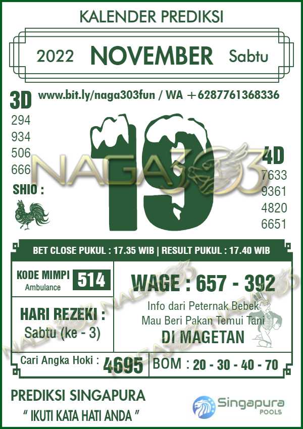 Prediksi Singapore Pools Sabtu 19 November 2022