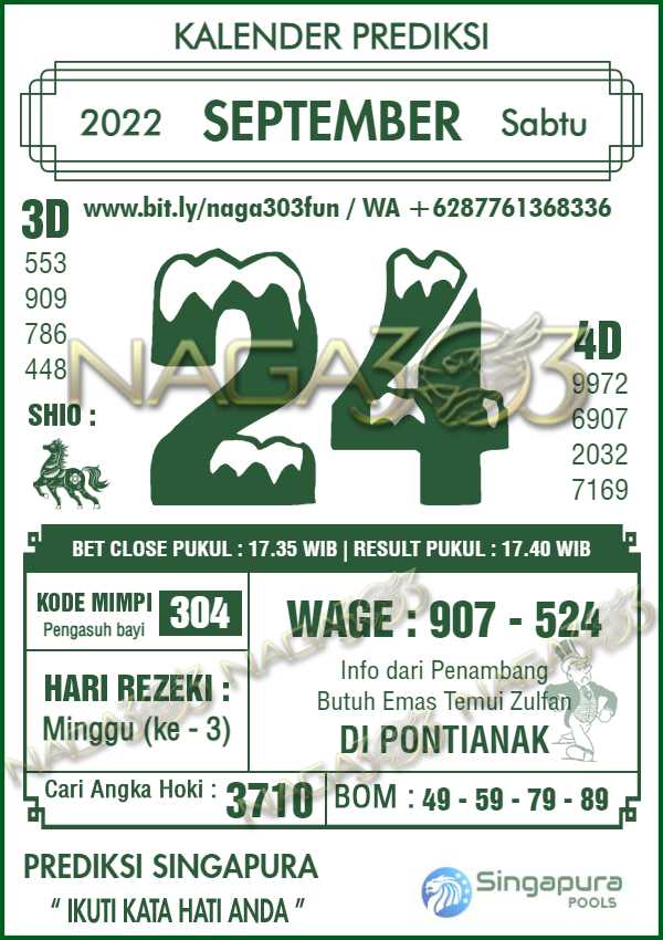 Prediksi Singapore Pools Sabtu 24 September 2022