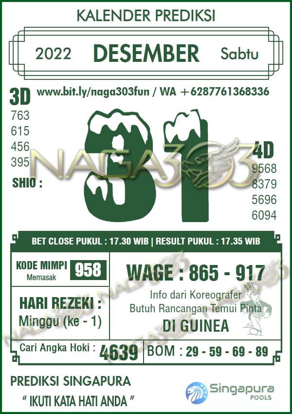 Prediksi Singapore Pools Sabtu 31 Desember 2022