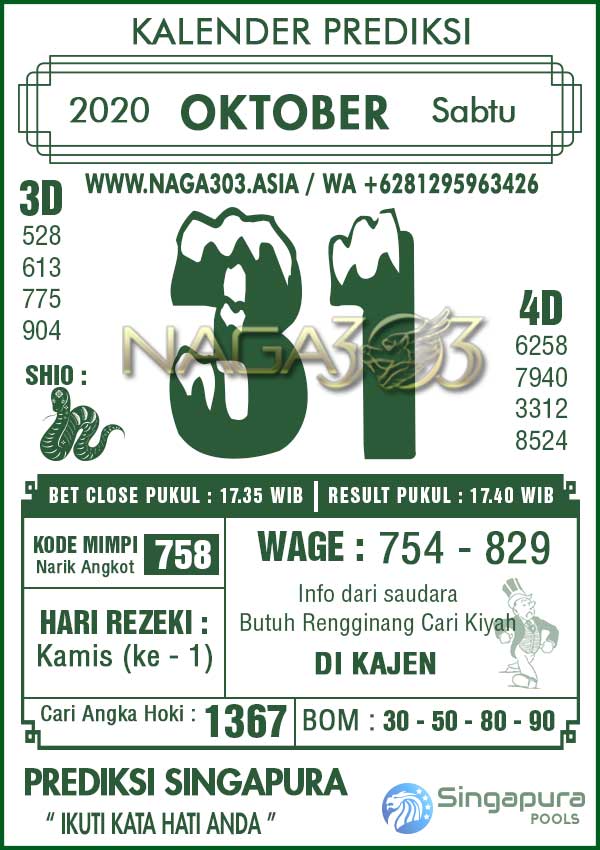 Prediksi Singapore Pools Sabtu 31 Oktober 2020