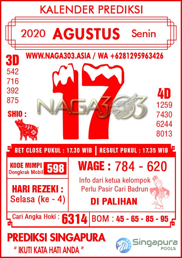 Prediksi Singapore Pools Senin 17 Agustus 2020