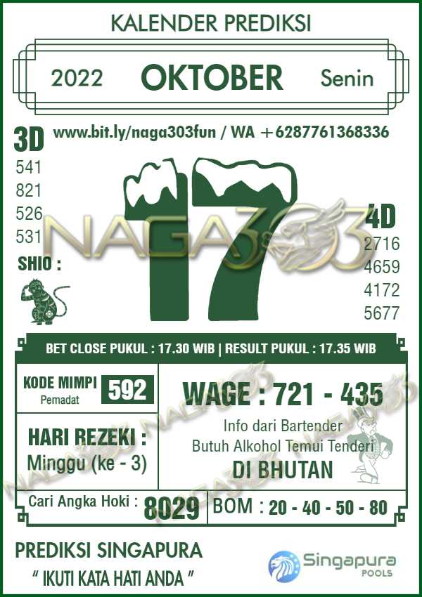 Prediksi Singapore Pools Senin 17 Oktober 2022 | Web Toto Naga303