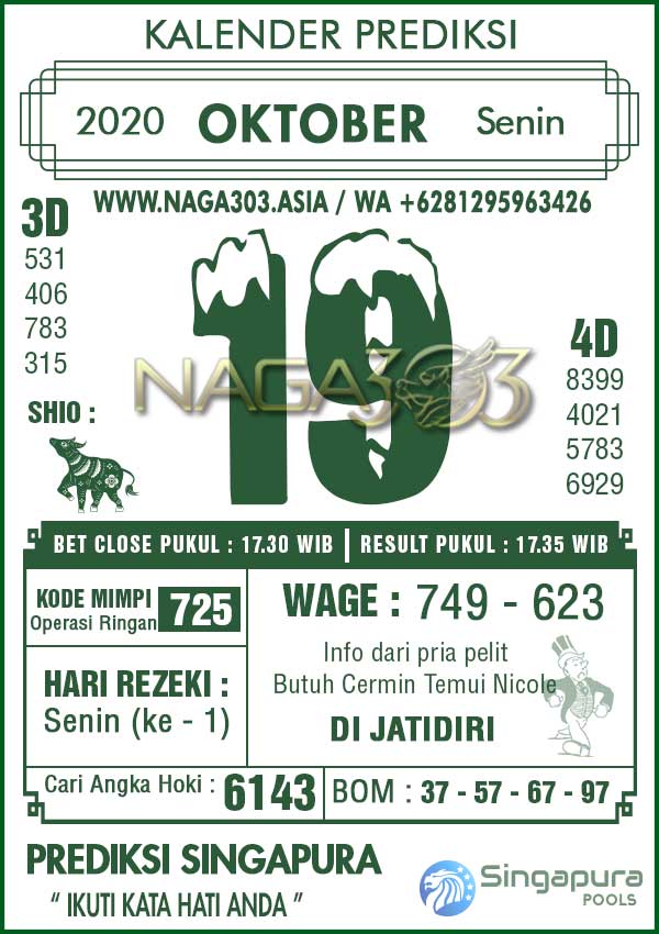 Prediksi Singapore Pools Senin 19 Oktober 2020