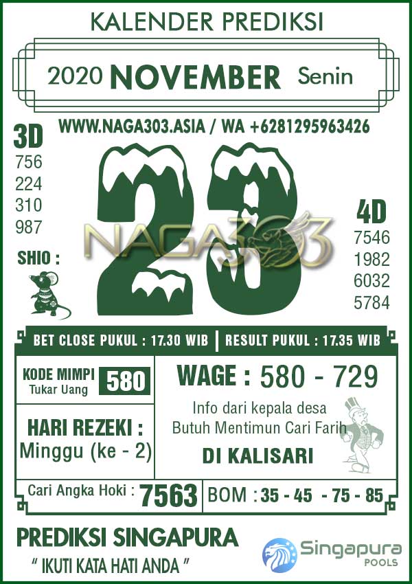 Prediksi Singapore Pools Senin 23 November 2020 | Web Toto Naga303