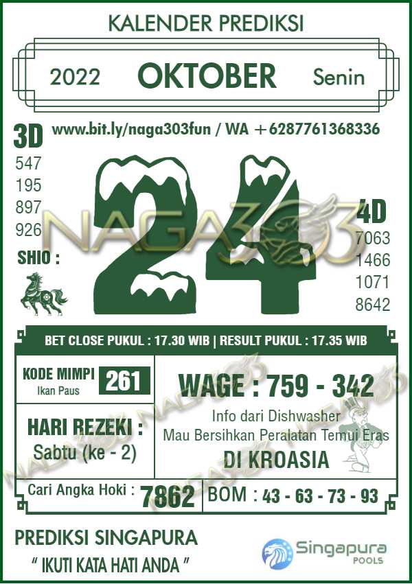 Prediksi Singapore Pools Senin 24 Oktober 2022
