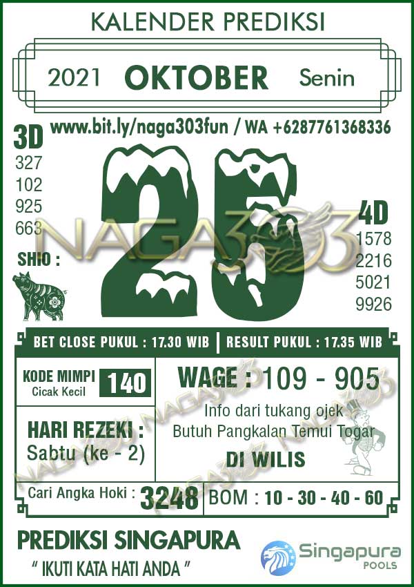 Prediksi Singapore Pools Senin 25 Oktober 2021 | Web Toto Naga303