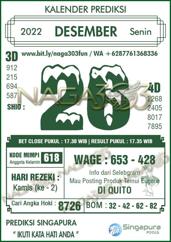 Prediksi Singapore Pools Senin 26 Desember 2022
