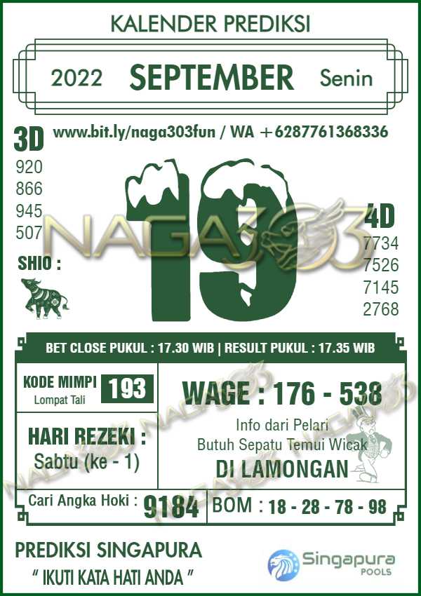 Prediksi Singapura Pools Senin 19 September 2022